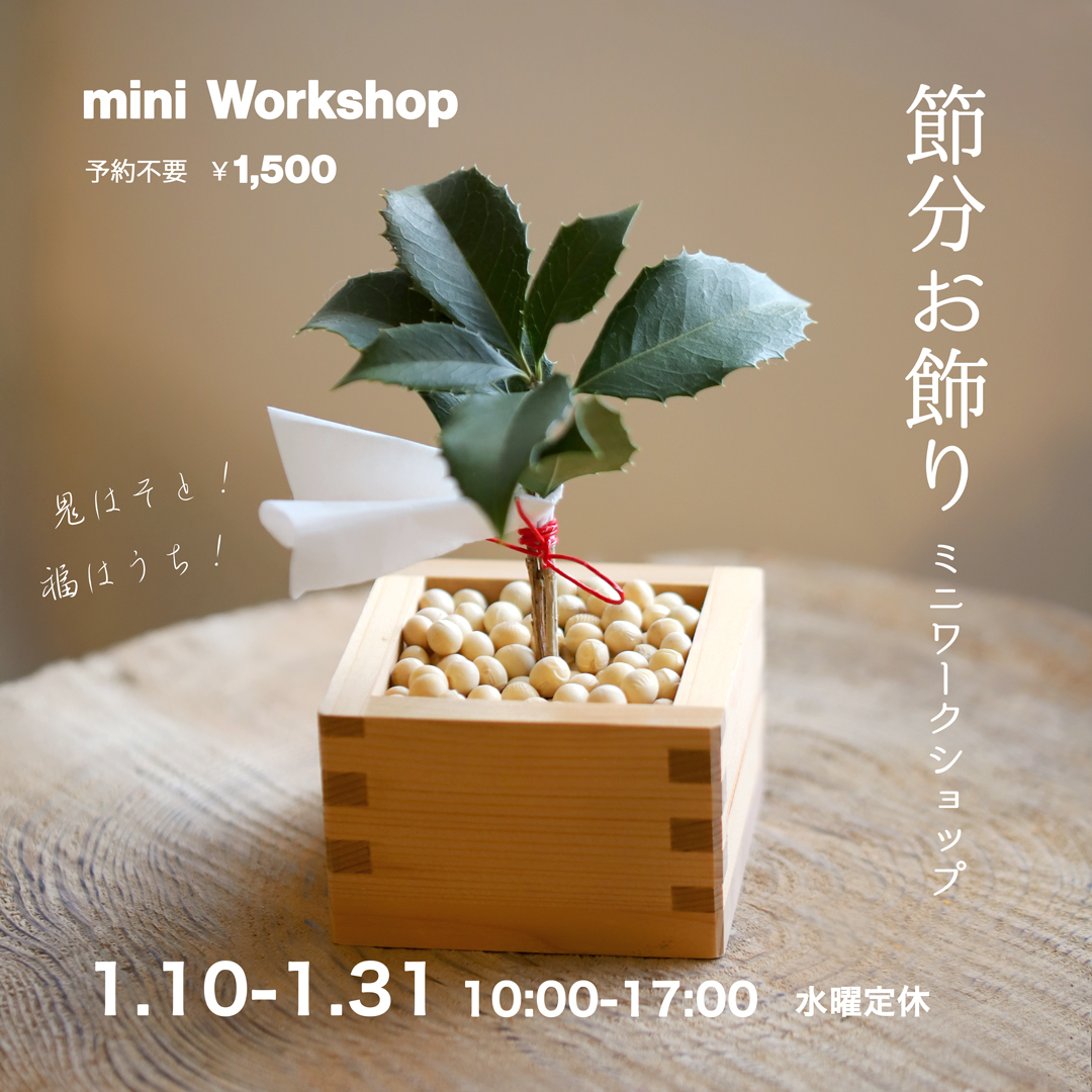毎年大好評いただいている「お正月アレンジメントワークショップ」を今年も開催します。とってもお得な価格でお正月アレンジを作ることができるこのワークショップ。今年はとっても長持ちする菊を主材に迎えて、馬の尾と足取りを軽やかに、エネルギッシュに表現したアレンジメントとなっております。 馬九行久(うまくいく)来年の幸せを願うアレンジメントを一緒に作りませんか?【お正月アレンジメントワークショップ】日時:12.30 tsu ①10:30-/②13:30- 各回定員8名さままで参加:6000円(お茶付き)予約:花工房あげたけ 0858-37-2010